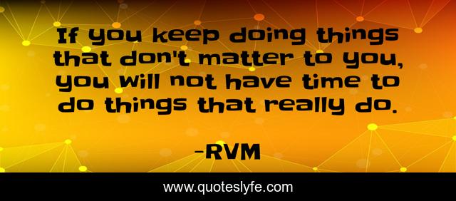 This page presents the quote "If you keep doing things that don't matter to you, you will not have time to do things that really do.". Author of this quote is RVM. This quote is about motivation, inspiration,.