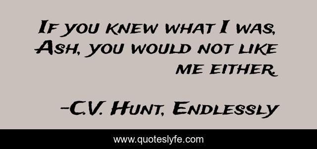This page presents the quote "If you knew what I was, Ash, you would not like me either.". Author of this quote is C.V. Hunt, Endlessly. .