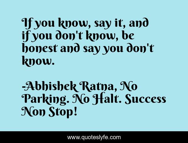 This page presents the quote "If you know, say it, and if you don't know, be honest and say you don't know.". Author of this quote is Abhishek Ratna, No Parking. No Halt. Success Non Stop!. This quote is about honesty, success,.