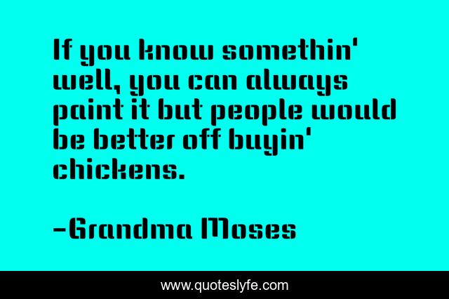 This page presents the quote "If you know somethin' well, you can always paint it but people would be better off buyin' chickens.". Author of this quote is Grandma Moses. This quote is about better, people,.