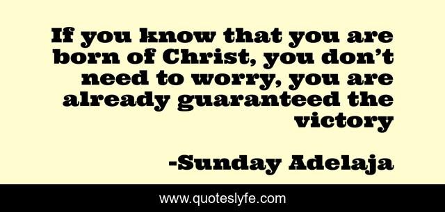 This page presents the quote "If you know that you are born of Christ, you don’t need to worry, you are already guaranteed the victory". Author of this quote is Sunday Adelaja. This quote is about born, guaranteed, christ, worry, victory,.
