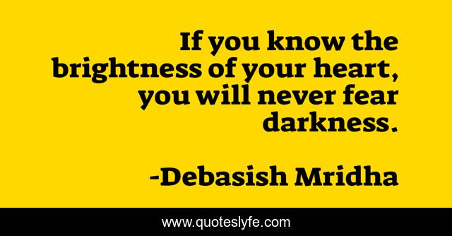 This page presents the quote "If you know the brightness of your heart, you will never fear darkness.". Author of this quote is Debasish Mridha. This quote is about brightness-of-your-heart, fear-darkness, philosophy, debasish-mridha, know-yourself, quotes, inspirational, enthusiasm, debasish-mridha-m-d,.