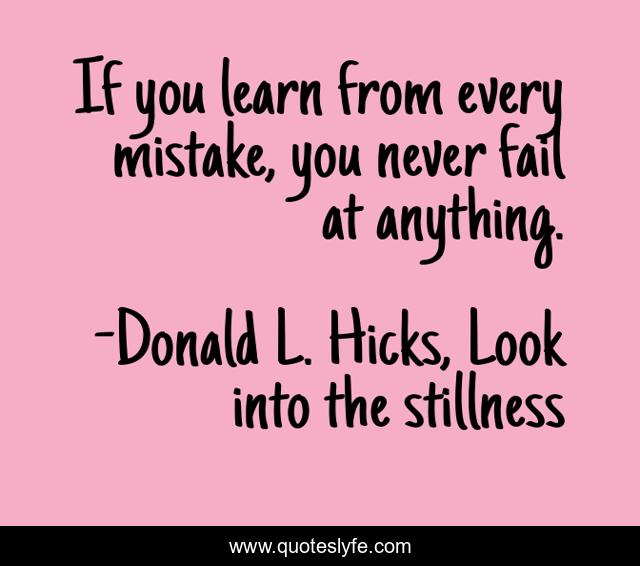 This page presents the quote "If you learn from every mistake, you never fail at anything.". Author of this quote is Donald L. Hicks, Look into the stillness. This quote is about failure, mistakes, learning-from-mistakes, failing,.