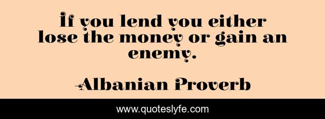 This page presents the quote "If you lend you either lose the money or gain an enemy.". Author of this quote is Albanian Proverb. .