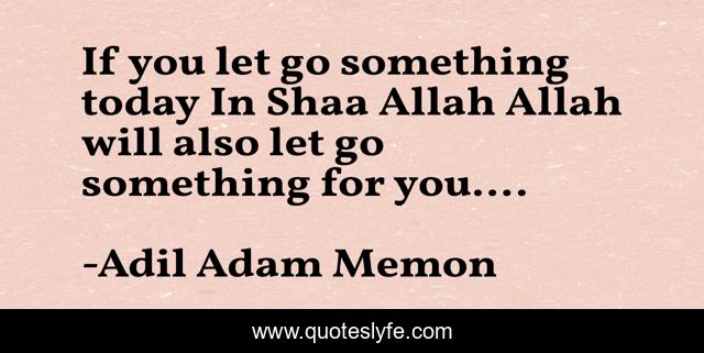 This page presents the quote "If you let go something today In Shaa Allah Allah will also let go something for you....". Author of this quote is Adil Adam Memon. .