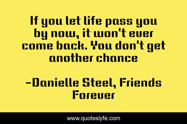 This page presents the quote "If you let life pass you by now, it won't ever come back. You don't get another chance". Author of this quote is Danielle Steel, Friends Forever. This quote is about life, love, inspirational, enthusiasm, friends, affection,.
