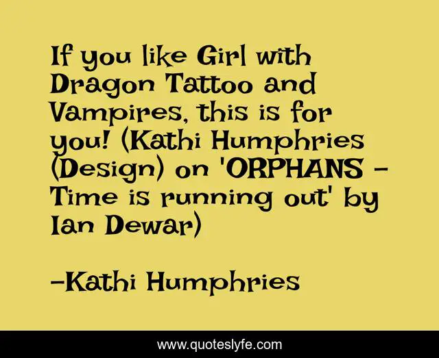 This page presents the quote "If you like Girl with Dragon Tattoo and Vampires, this is for you! (Kathi Humphries (Design) on 'ORPHANS - Time is running out' by Ian Dewar)". Author of this quote is Kathi Humphries. This quote is about action-adventure, adult, thriller,.