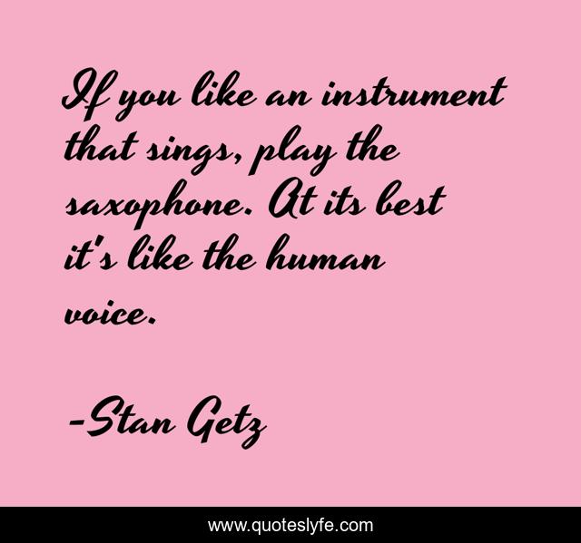 This page presents the quote "If you like an instrument that sings, play the saxophone. At its best it's like the human voice.". Author of this quote is Stan Getz. This quote is about play, voice,.