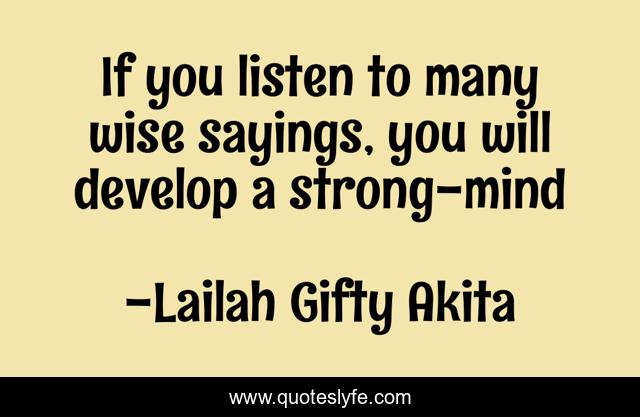 This page presents the quote "If you listen to many wise sayings, you will develop a strong-mind". Author of this quote is Lailah Gifty Akita. This quote is about wise-sayings, mind-control, positive-thinking,.