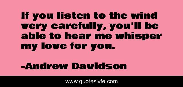 This page presents the quote "If you listen to the wind very carefully, you'll be able to hear me whisper my love for you.". Author of this quote is Andrew Davidson. This quote is about distance, love, affection,.