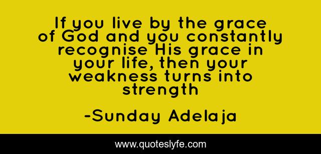 This page presents the quote "If you live by the grace of God and you constantly recognise His grace in your life, then your weakness turns into strength". Author of this quote is Sunday Adelaja. This quote is about weakness, strength, grace,.