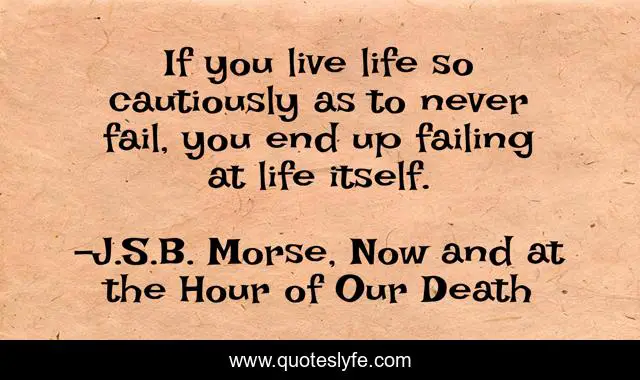 This page presents the quote "If you live life so cautiously as to never fail, you end up failing at life itself.". Author of this quote is J.S.B. Morse, Now and at the Hour of Our Death. This quote is about relationships, living, life, love, success, lost-love, failing, failure, heartbreak,.