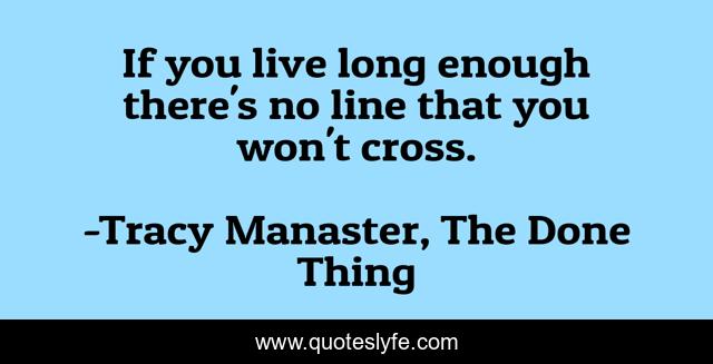 This page presents the quote "If you live long enough there's no line that you won't cross.". Author of this quote is Tracy Manaster, The Done Thing. .