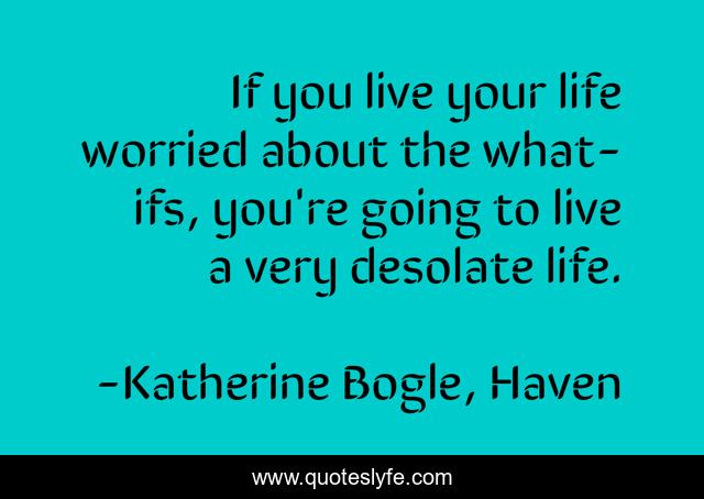 This page presents the quote "If you live your life worried about the what-ifs, you're going to live a very desolate life.". Author of this quote is Katherine Bogle, Haven. .
