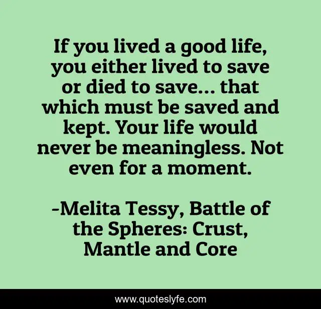 "Melita Tessy, Battle of the Spheres: Crust, Mantle and Core Quotes." Quoteslyfe.com, 2025. Sat. 06 Dec. 2025. <https://www.quoteslyfe.com/quote/If-you-lived-a-good-life-you-37938>.