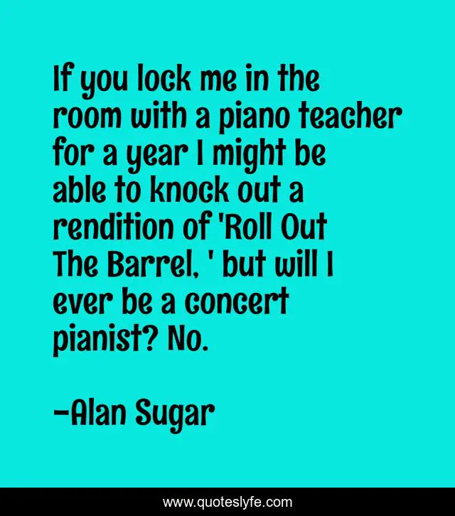 This page presents the quote "If you lock me in the room with a piano teacher for a year I might be able to knock out a rendition of 'Roll Out The Barrel, ' but will I ever be a concert pianist? No.". Author of this quote is Alan Sugar. This quote is about me, lock,.