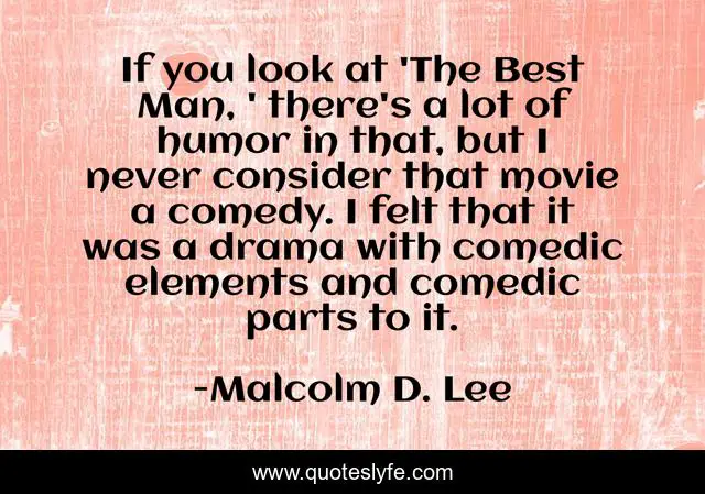 This page presents the quote "If you look at 'The Best Man, ' there's a lot of humor in that, but I never consider that movie a comedy. I felt that it was a drama with comedic elements and comedic parts to it.". Author of this quote is Malcolm D. Lee. This quote is about drama, best, man,.