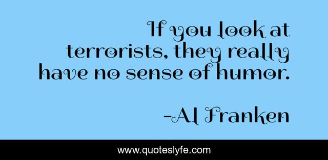 This page presents the quote "If you look at terrorists, they really have no sense of humor.". Author of this quote is Al Franken. This quote is about sense of humor, look,.