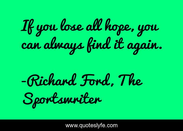 This page presents the quote "If you lose all hope, you can always find it again.". Author of this quote is Richard Ford, The Sportswriter. .