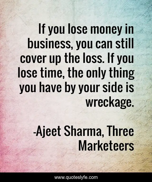 "Ajeet Sharma, Three Marketeers Quotes." Quoteslyfe.com, 2025. Tue. 09 Dec. 2025. <https://www.quoteslyfe.com/quote/If-you-lose-money-in-business-you-32550>.
