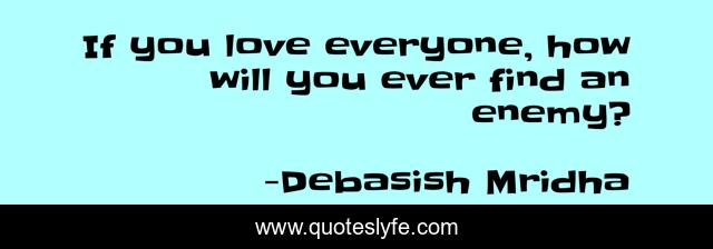 This page presents the quote "If you love everyone, how will you ever find an enemy?". Author of this quote is Debasish Mridha. This quote is about enemy, life, debasish, love, mridha, philosophy, kindness, affection,.