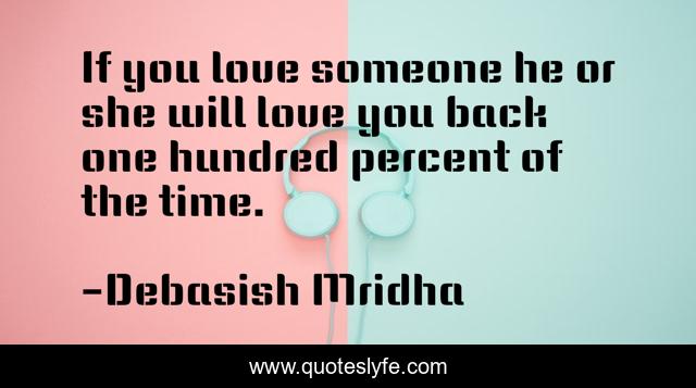 This page presents the quote "If you love someone he or she will love you back one hundred percent of the time.". Author of this quote is Debasish Mridha. This quote is about life, love, knowledge, inspirational, intelligence, philosophy, wisdom, quotes, affection,.
