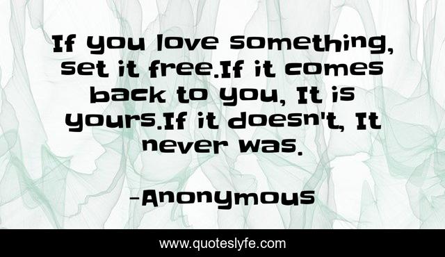 This page presents the quote "If you love something, set it free.If it comes back to you, It is yours.If it doesn't, It never was.". Author of this quote is Anonymous. This quote is about enthusiasm, love, inspirational, affection, love-hurts,.