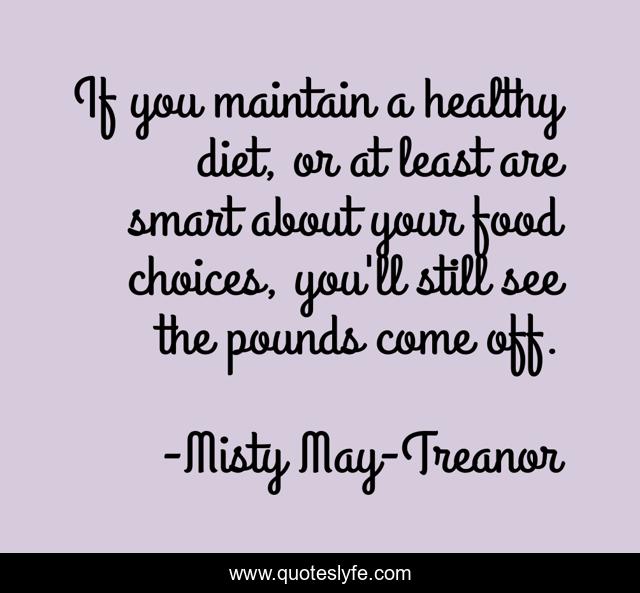 This page presents the quote "If you maintain a healthy diet, or at least are smart about your food choices, you'll still see the pounds come off.". Author of this quote is Misty May-Treanor. This quote is about healthy, smart, choices,.
