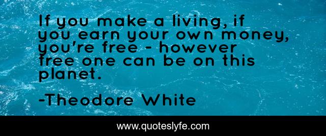 This page presents the quote "If you make a living, if you earn your own money, you're free - however free one can be on this planet.". Author of this quote is Theodore White. This quote is about living, free,.