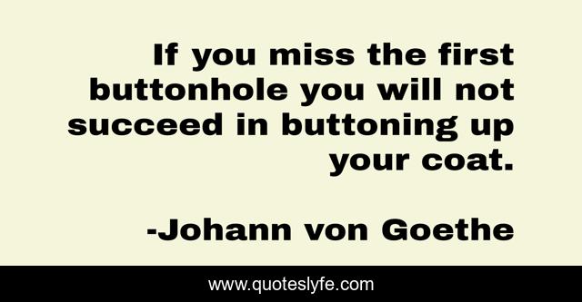This page presents the quote "If you miss the first buttonhole you will not succeed in buttoning up your coat.". Author of this quote is Johann von Goethe. This quote is about going, getting,.
