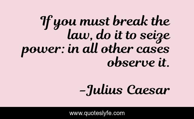 This page presents the quote "If you must break the law, do it to seize power: in all other cases observe it.". Author of this quote is Julius Caesar. This quote is about law, legal,.