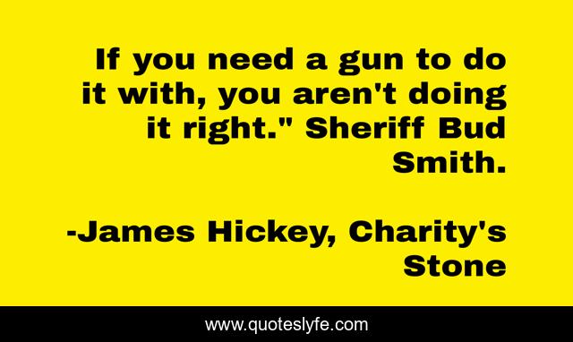 This page presents the quote "If you need a gun to do it with, you aren't doing it right." Sheriff Bud Smith.". Author of this quote is James Hickey, Charity's Stone. This quote is about law, police, guns, sheriff,.