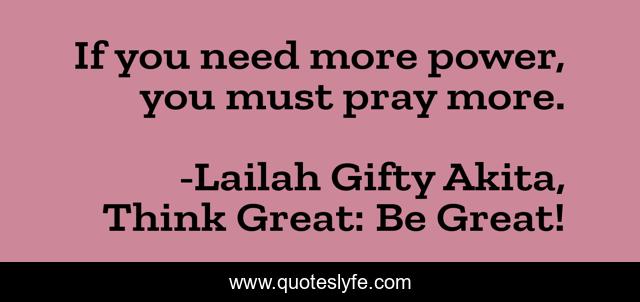 "Lailah Gifty Akita, Think Great: Be Great! Quotes." Quoteslyfe.com, 2025. Fri. 05 Dec. 2025. <https://www.quoteslyfe.com/quote/If-you-need-more-power-you-must-114893>.