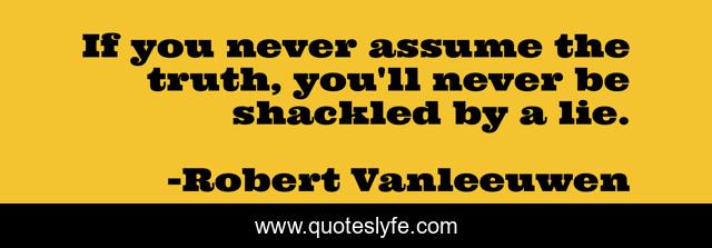 This page presents the quote "If you never assume the truth, you'll never be shackled by a lie.". Author of this quote is Robert Vanleeuwen. This quote is about lies, life, hate, truth, prison,.