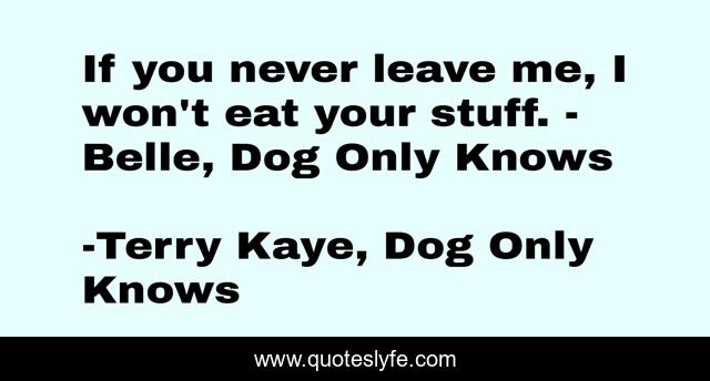 This page presents the quote "If you never leave me, I won't eat your stuff. - Belle, Dog Only Knows". Author of this quote is Terry Kaye, Dog Only Knows. This quote is about animals, humor,.
