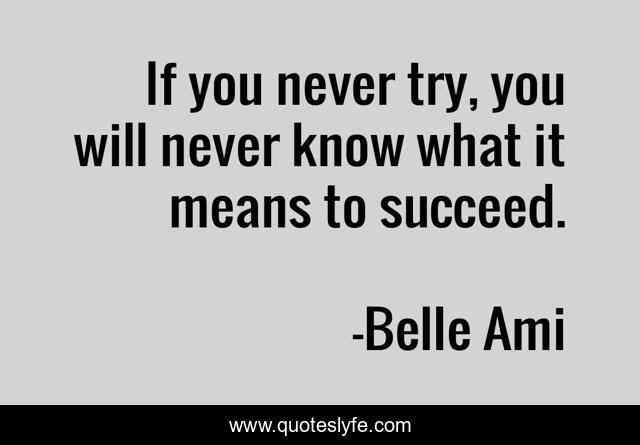 This page presents the quote "If you never try, you will never know what it means to succeed.". Author of this quote is Belle Ami. This quote is about self-motivation, self-realization, author, inspirational, enthusiasm,.
