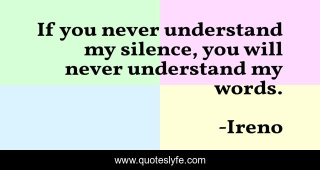 This page presents the quote "If you never understand my silence, you will never understand my words.". Author of this quote is Ireno. .
