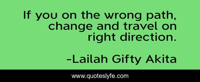 This page presents the quote "If you on the wrong path, change and travel on right direction.". Author of this quote is Lailah Gifty Akita. This quote is about paths, life, positive, motivational, confidence, optimistic, change,.
