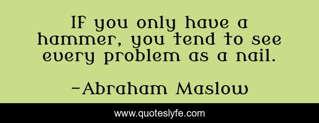 This page presents the quote "If you only have a hammer, you tend to see every problem as a nail.". Author of this quote is Abraham Maslow. This quote is about problem, see,.
