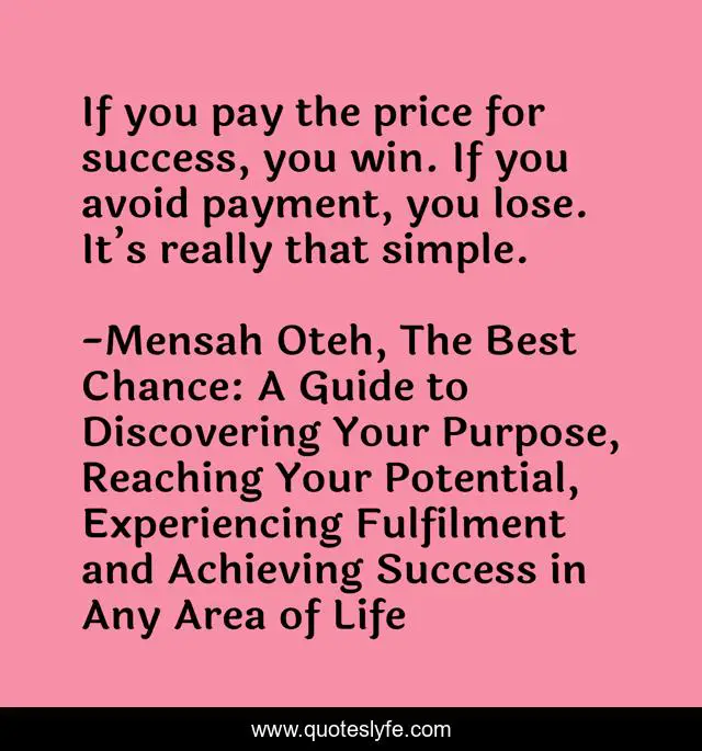 "Mensah Oteh, The Best Chance: A Guide to Discovering Your Purpose, Reaching Your Potential, Experiencing Fulfilment and Achieving Success in Any Area of Life Quotes." Quoteslyfe.com, 2025. Fri. 05 Dec. 2025. <https://www.quoteslyfe.com/quote/If-you-pay-the-price-for-success-15897>.