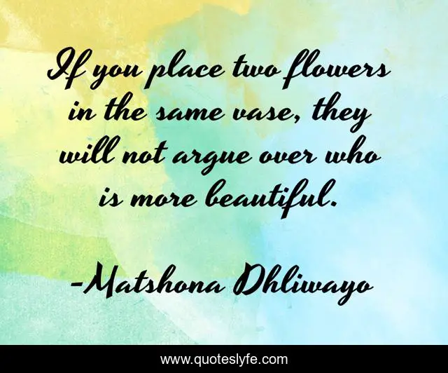 "Matshona Dhliwayo Quotes." Quoteslyfe.com, 2025. Sun. 07 Dec. 2025. <https://www.quoteslyfe.com/quote/If-you-place-two-flowers-in-the-97933>.