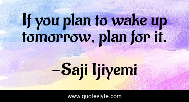 This page presents the quote "If you plan to wake up tomorrow, plan for it.". Author of this quote is Saji Ijiyemi. This quote is about planning, plans, preparation, future, plan, tomorrow,.