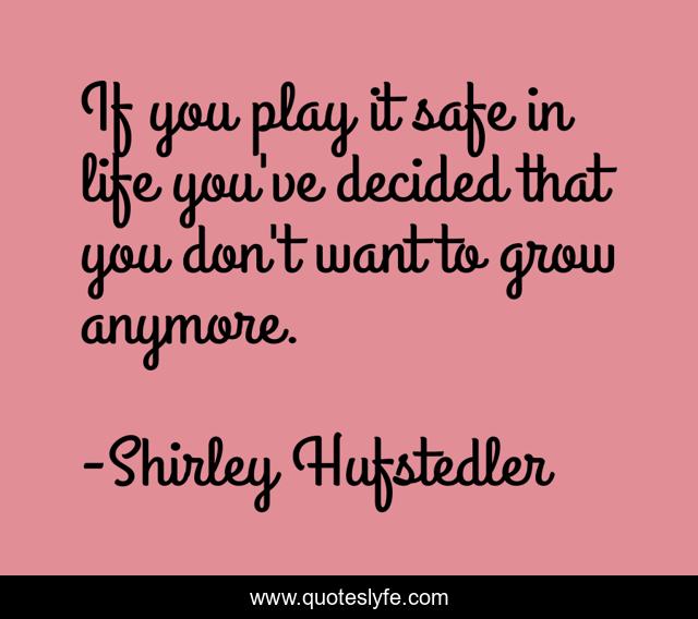 "Shirley Hufstedler Quotes." Quoteslyfe.com, 2025. Sat. 06 Dec. 2025. <https://www.quoteslyfe.com/quote/If-you-play-it-safe-in-life-264310>.