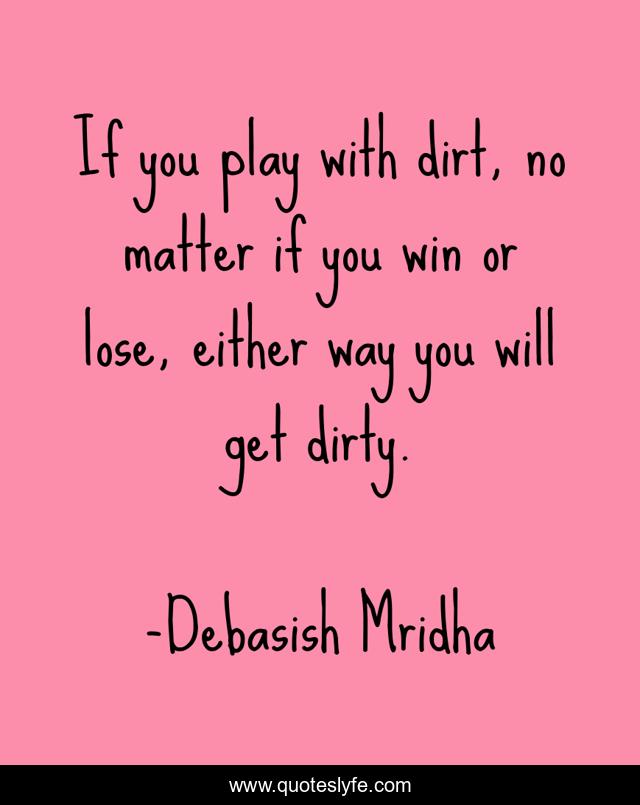 This page presents the quote "If you play with dirt, no matter if you win or lose, either way you will get dirty.". Author of this quote is Debasish Mridha. This quote is about life, love, knowledge, inspirational, intelligence, philosophy, wisdom, quotes, affection,.