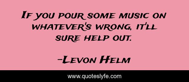 This page presents the quote "If you pour some music on whatever's wrong, it'll sure help out.". Author of this quote is Levon Helm. This quote is about help, whatever,.