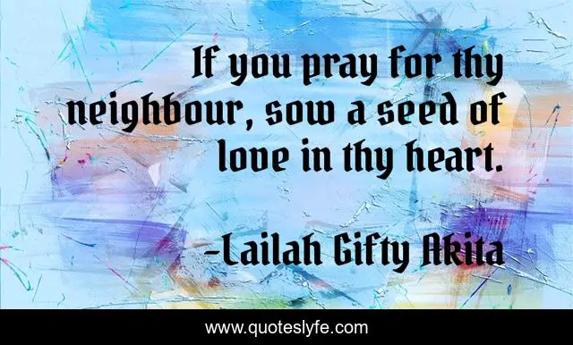 This page presents the quote "If you pray for thy neighbour, sow a seed of love in thy heart.". Author of this quote is Lailah Gifty Akita. This quote is about neighbour, pray, love, humanity, affection,.