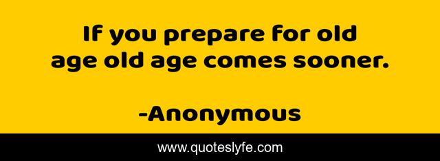 This page presents the quote "If you prepare for old age old age comes sooner.". Author of this quote is Anonymous. This quote is about positive, confidence,.