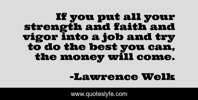 This page presents the quote "If you put all your strength and faith and vigor into a job and try to do the best you can, the money will come.". Author of this quote is Lawrence Welk. This quote is about money, strength, faith,.