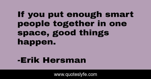 This page presents the quote "If you put enough smart people together in one space, good things happen.". Author of this quote is Erik Hersman. This quote is about good, together, smart,.