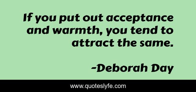 This page presents the quote "If you put out acceptance and warmth, you tend to attract the same.". Author of this quote is Deborah Day. This quote is about attitude-toward-life, friendships, acceptance, kindness,.